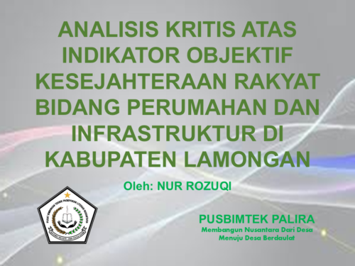 ANALISIS KRITIS ATAS INDIKATOR OBJEKTIF KESEJAHTERAAN RAKYAT BIDANG PERUMAHAN DAN INFRASTRUKTUR DI KABUPATEN LAMONGAN
