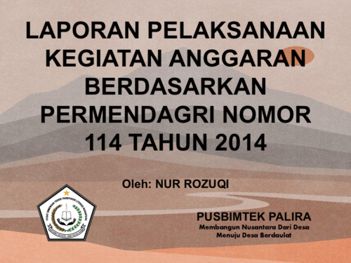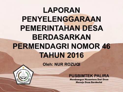 LAPORAN PENYELENGGARAAN PEMERINTAHAN DESA BERDASARKAN PERMENDAGRI NOMOR 46 TAHUN 2016 Oleh: NUR ROZUQI* A. Pendahuluan Permendagri Nomor 46 Tahun 2016 hadir sebagai aturan teknis untuk memperjelas mekanisme akuntabilitas pemerintahan desa,