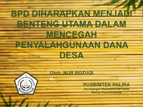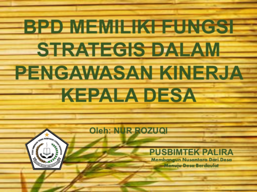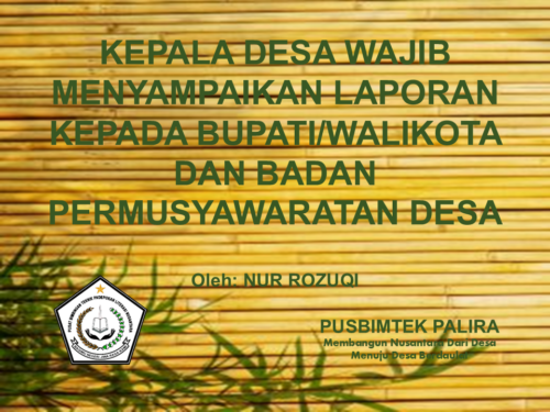 KEPALA DESA WAJIB MENYAMPAIKAN LAPORAN KEPADA BUPATI/WALIKOTA DAN BADAN PERMUSYAWARATAN DESA Oleh: NUR ROZUQI* A. Pendahuluan Pengawasan Dana Desa merupakan salah satu aspek fundamental dalam menjaga transparansi dan akuntabilitas penyelenggaraan
