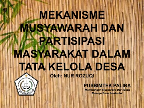 MEKANISME MUSYAWARAH DAN PARTISIPASI MASYARAKAT DALAM TATA KELOLA DESA