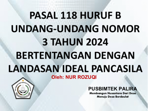 Begini uraian jelas dan lengkap mengenai potensi pertentangan antara Pasal 118 huruf b Undang-Undang Nomor 3 Tahun 2024 dan landasan ideal Pancasila, khususnya dalam konteks demokrasi desa, keadilan sosial, dan etika kepemimpinan: