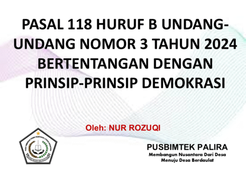 Beginilah uraian jelas dan lengkap mengenai potensi pertentangan antara Pasal 118 huruf b Undang-Undang Nomor 3 Tahun 2024 dan prinsip-prinsip demokrasi, khususnya dalam konteks pemerintahan desa: