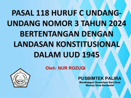 PASAL 118 HURUF C UNDANG-UNDANG NOMOR 3 TAHUN 2024 BERTENTANGAN DENGAN LANDASAN KONSTITUSIONAL DALAM UUD 1945