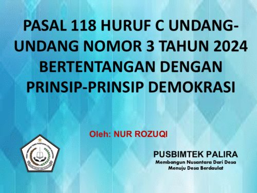 Berikut uraian jelas dan lengkap mengenai potensi pertentangan antara Pasal 118 huruf c Undang-Undang Nomor 3 Tahun 2024 dan prinsip-prinsip demokrasi, khususnya dalam konteks pemerintahan desa:
