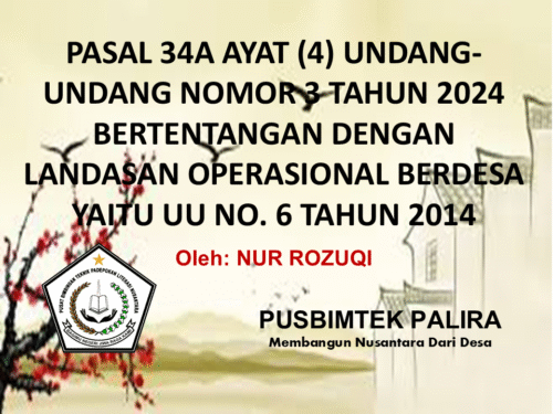 PASAL 34A AYAT (4) UNDANG-UNDANG NOMOR 3 TAHUN 2024 BERTENTANGAN DENGAN LANDASAN OPERASIONAL BERDESA YAITU UU NO. 6 TAHUN 2014