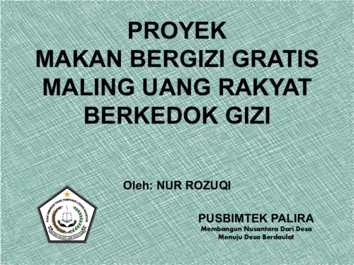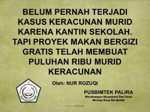 BELUM PERNAH TERJADI KASUS KERACUNAN MURID KARENA KANTIN SEKOLAH. TAPI PROYEK MAKAN BERGIZI GRATIS TELAH MEMBUAT PULUHAN RIBU MURID KERACUNAN Oleh: NUR ROZUQI* A. Pendahuluan Program Makan Bergizi Gratis (MBG)