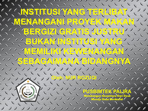 INSTITUSI YANG TERLIBAT MENANGANI PROYEK MAKAN BERGIZI GRATIS JUSTRU BUKAN INSTITUSI YANG MEMILIKI KEWENANGAN SEBAGAIMANA BIDANGNYA
