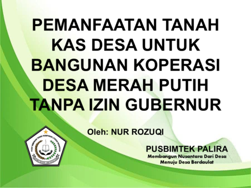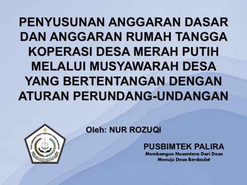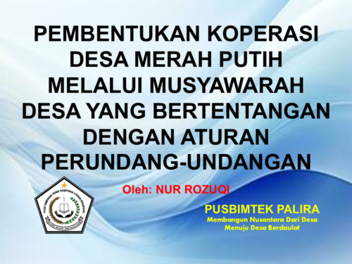 PEMBENTUKAN KOPERASI KELURAHAN MERAH PUTIH MELALUI MUSYAWARAH KELURAHAN Oleh: NUR ROZUQI* A. Pendahuluan Koperasi merupakan organisasi ekonomi yang berlandaskan asas kekeluargaan dan demokrasi, serta menjadi salah satu instrumen penting dalam […]