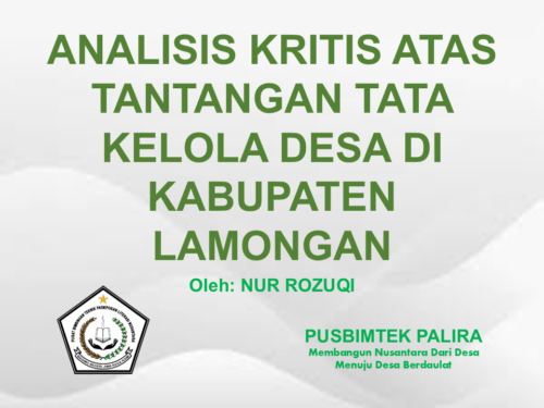 ANALISIS KRITIS ATAS INDIKATOR KESEJAHTERAAN DESA DI KABUPATEN LAMONGAN Oleh: NUR ROZUQI* A. Pendahuluan Indikator kesejahteraan desa biasanya mencakup akses terhadap pendidikan dan layanan kesehatan, ketersediaan infrastruktur dasar, keberadaan lembaga […]
